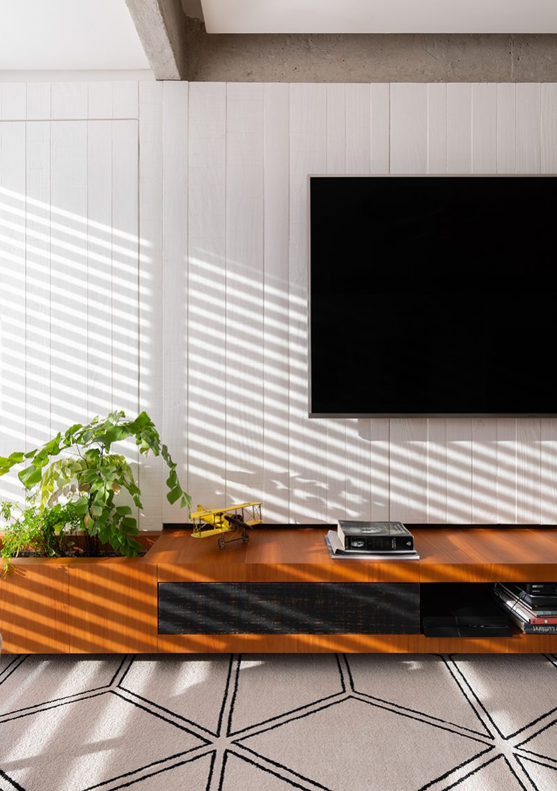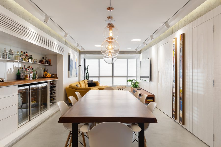 “Pensamos, para este novo período na vida do casal, uma arquitetura que gerasse maior integração dos espaços, combinado com o desejo deles, trazendo maior aproveitamento da luz natural em todos os momentos do dia. Para isso, desobstruímos as janelas e transformamos os espaços compartimentados em uma ampla área de convívio”, conta o arquiteto Luiz Volpato, que assina o projeto.