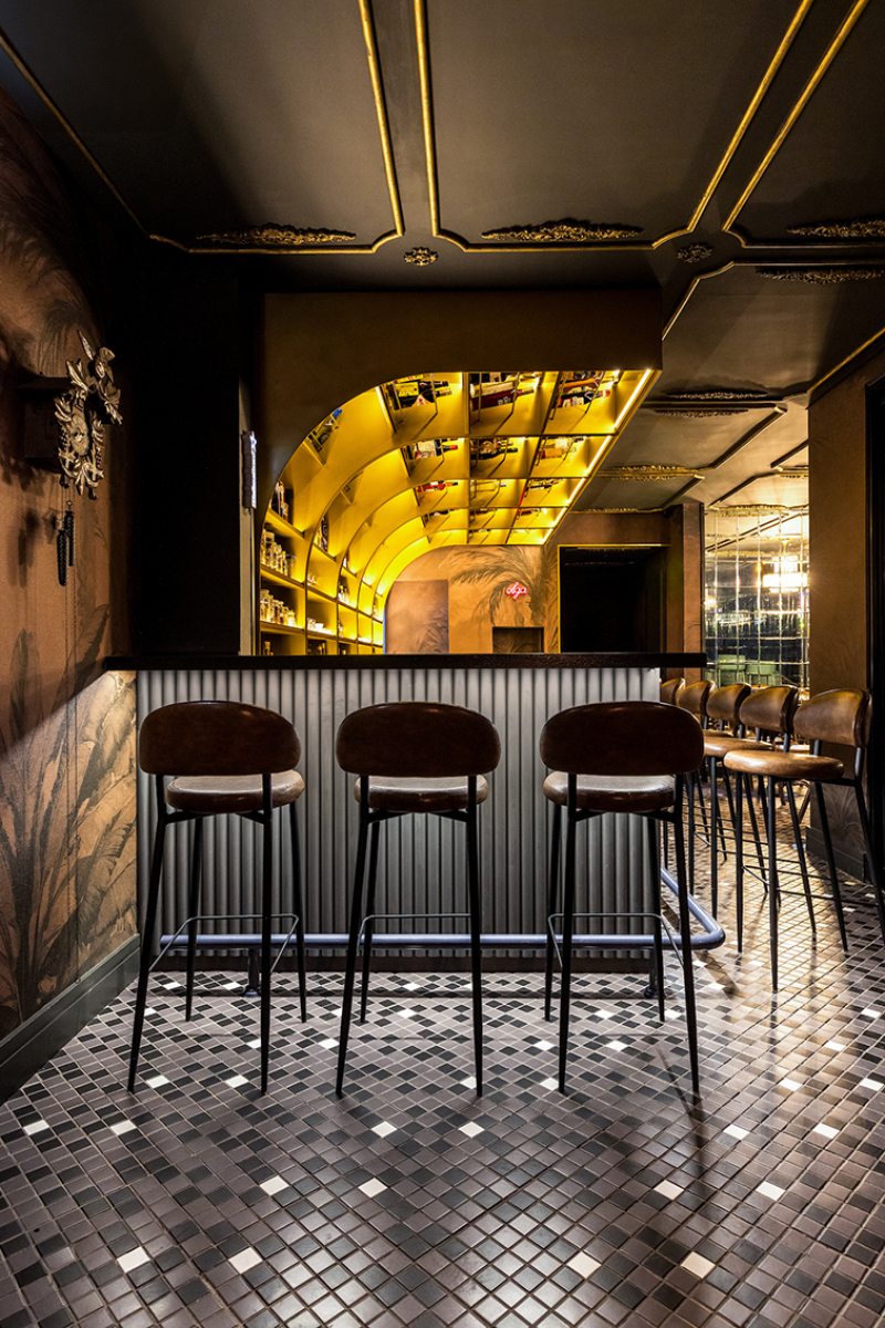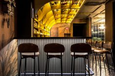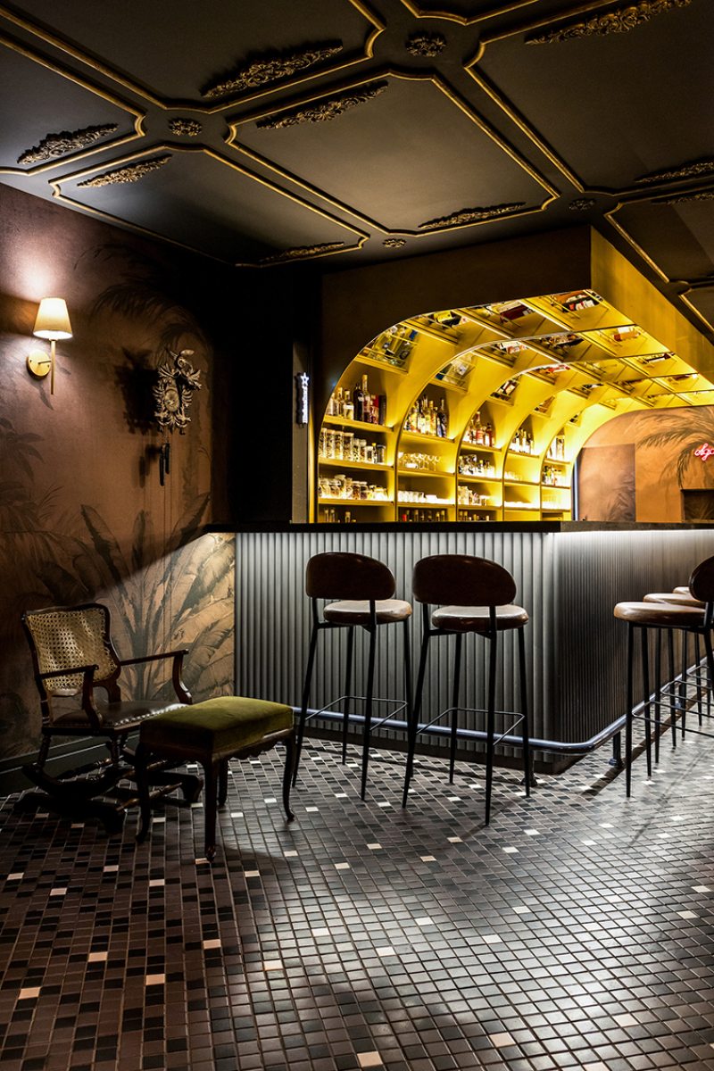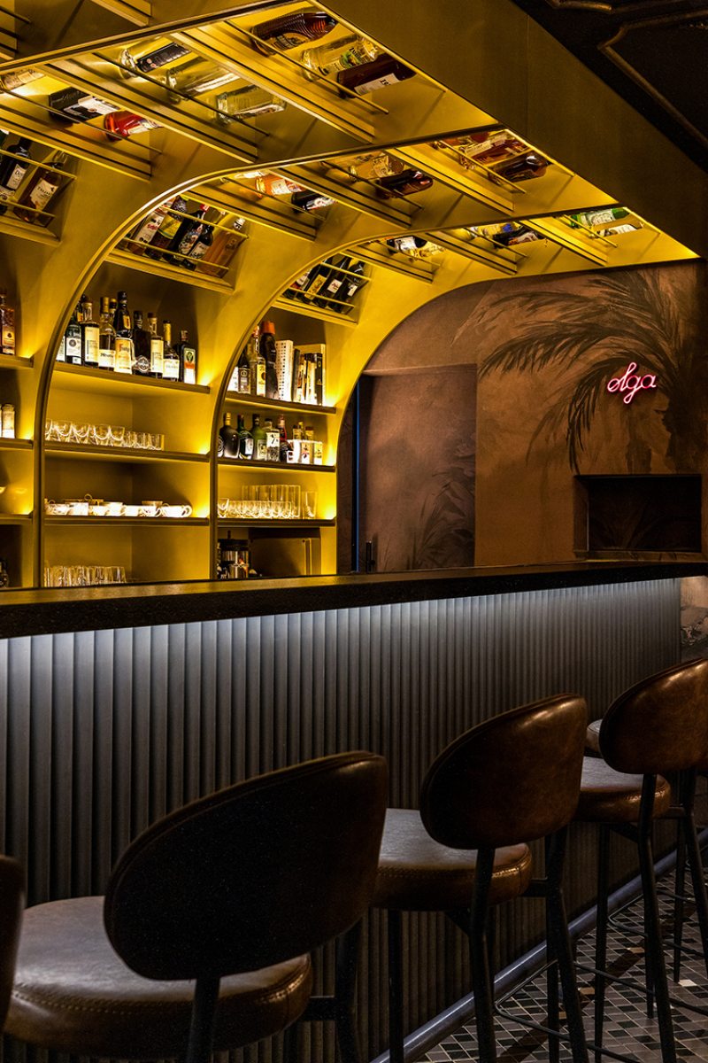 Estamos falando do Olga Speakeasy, também chamado de Olga Botica Bar, que tem projeto assinado pelo arquiteto Giuliano Marchiorato onde “nada é totalmente óbvio”. Desde a entrada, a arquitetura trabalha a sensação de descoberta com uma atmosfera mais intimista, iluminação controlada e forte construção cenográfica, reforçando a ideia de exclusividade e mistério.