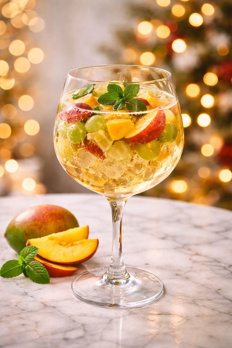 No Brasil, onde o Natal acontece em pleno verão, faz sentido aliviar a estrutura do ponche clássico. Isso significa renunciar especiarias mais intensas, reduzir o teor alcoólico e valorizar frutas frescas, sucos naturais e bebidas mais leves. Nessa leitura contemporânea, o vinho pode dar lugar ao espumante — alcoólico ou não —, o suco de laranja pode ser substituído por pêssego, uva branca ou maçã, e as frutas entram de acordo com a preferência de quem recebe.