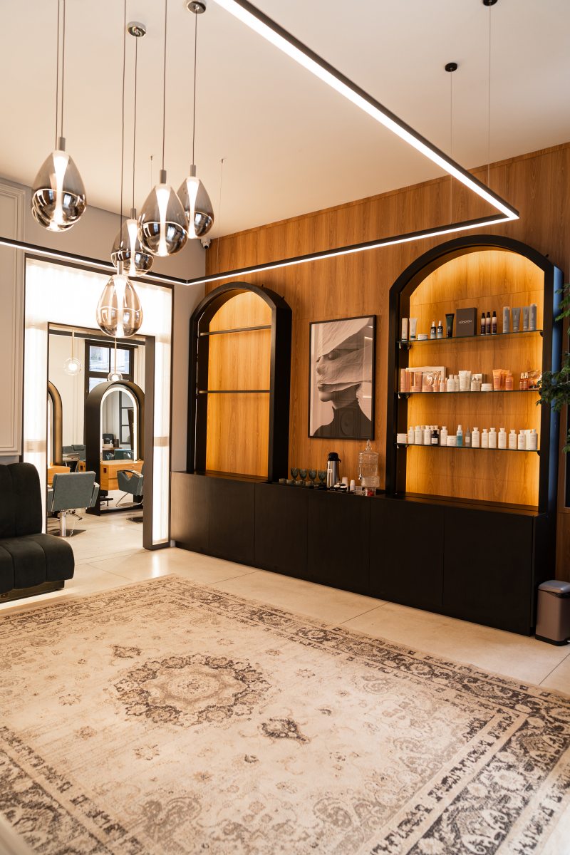 Para além da estética, o projeto prioriza o uso: altura das bancadas, disposição dos espelhos e organização dos fluxos foram pensados em conjunto com as fundadoras Simone Camargo e Caroline Gaspar. O resultado é um ambiente que acolhe, valoriza o cuidado e transforma o momento de beleza em experiência.