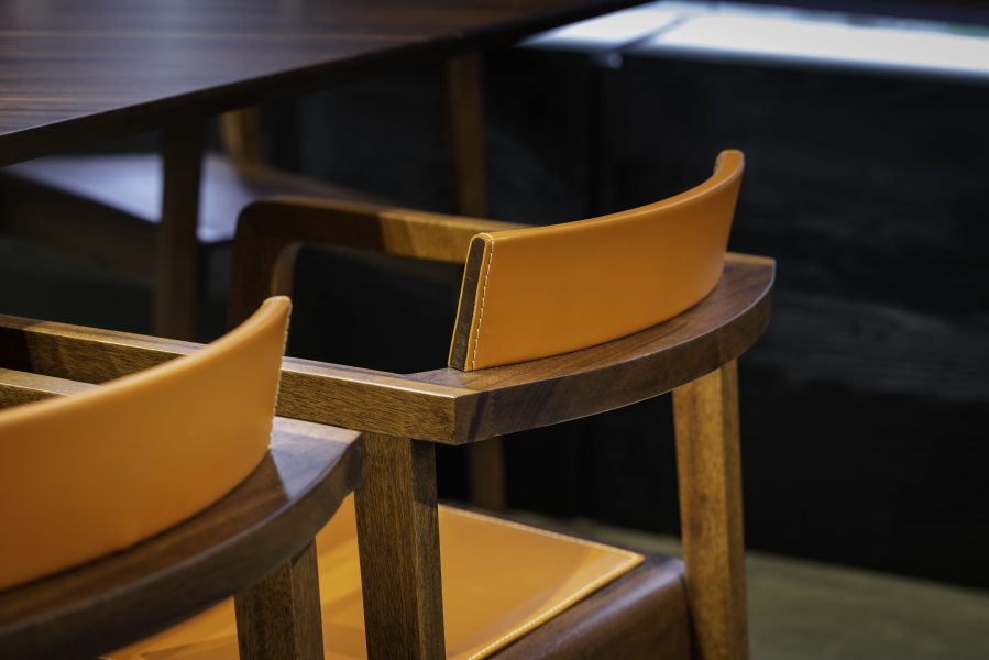 Acima: Mesa de jantar e cadeiras que compõem a linha Soul, feitos de madeira maciça (elemento marcante do design autoral da marca). Confira mais imagens em nossa galeria!
