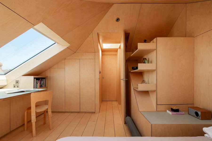 Era essa a situação do sótão antes negligenciado e relegado ao armazenamento, que foi cuidadosamente reinventado e transformado em quarto com banheiro e escritório. Assinado pelo escritório inglês Turner Architects, o antigo espaço foi completamente ressignificado. Em vez de ser lido como uma adição, o espaço parece incorporado à arquitetura existente, como se sempre estivesse esperando para ser descoberto.