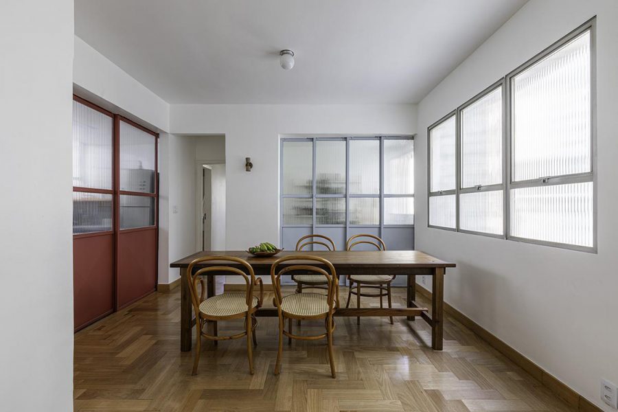 O uso do produto remete ao período de prosperidade no design brasileiro e internacional nas décadas de 1950 e 1960, quando era amplamente adotado em janelas, divisórias, portas e móveis com estética modernista, valorizando luz, textura e privacidade. Associado ao estilo mid-century modern, que priorizava linhas limpas, funcionalidade e integração com a luz natural, ele agora retorna como tendência associada ao estilo retrô-contemporâneo como apresentado neste projeto de reforma assinado pelo Estúdio Pedro Haruf em um apartamento no bairro São Bento, em Belo Horizonte.